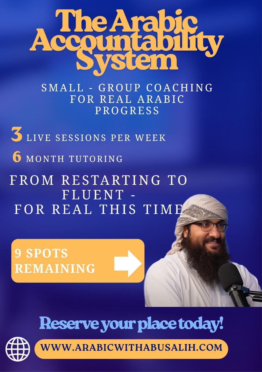 The Arabic Accountability System is a small-group coaching program that keeps you consistent until Arabic becomes second nature.
